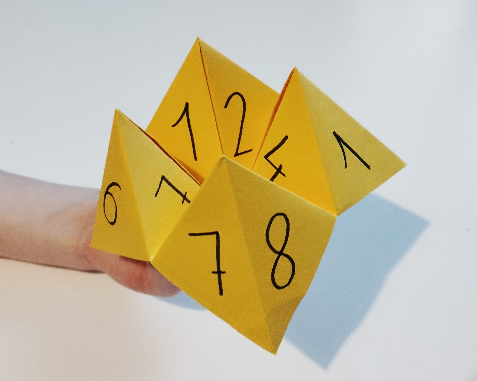 Papírová skládačka neboli klapačka. Pokud dovnitř skládačky vymyslíte dobré úkoly, může být tahle hra další pěknou společnou chvilkou.