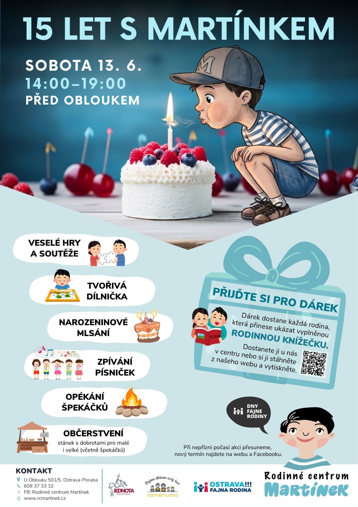 Rodinné centrum Martínek slaví 15. narozeniny a zve všechny děti, rodiče a přátele na velkou oslavu! Co vás čeká: